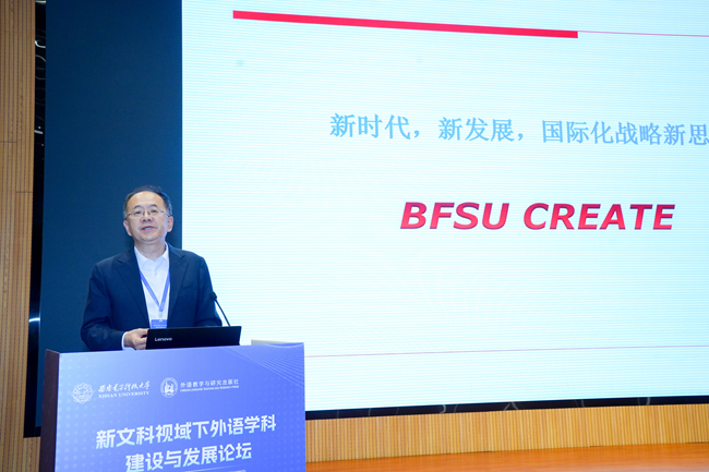 贾文键以“新时代 新发展 国际化战略新思考 BFSU CREATE”为题,深入阐释了新文科背景下外语学科的固本守正与改革创新。他重点介绍了北外以服务国家战略为引领,着力提升学者全球竞争力、学生全球胜任力和学校全球影响力的重要目标,以及通过全球伙伴计划、全球声誉计划、全球师资计划、全球学术计划、全球英才计划、全球保障计划等深度参与全球教育治理、着力培养高素质国际化人才的关键举措。在数智赋能方面,北外创设“德语/俄语+大数据管理与应用”双学位复合型人才培养项目,开展“英语+信息系统管理”跨校联培与“教育技术与人工智能”合作办学项目,并将依托全球语言服务平台、中国-中亚数字教育联盟、中国高校外语慕课联盟等持续推动资源共享与智能创新。他强调,外语院校应牢记习近平总书记给北外老教授们的回信中所强调的“外语院校大有可为”的内涵,与时俱进、开拓创新,为加快建设教育强国、实现中华民族伟大复兴作出更大贡献。