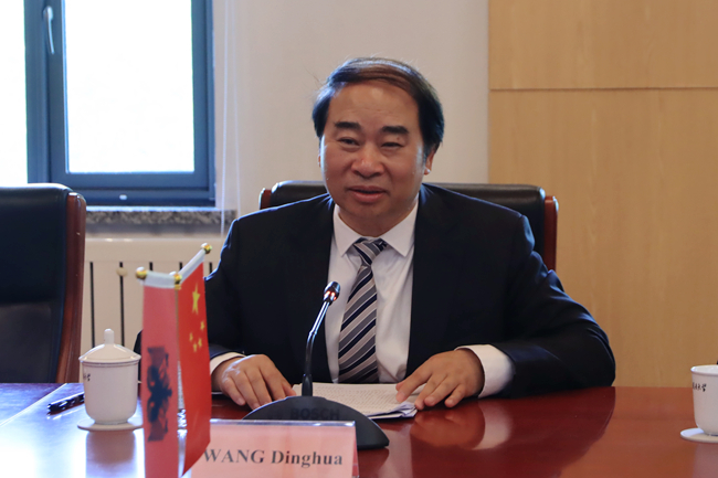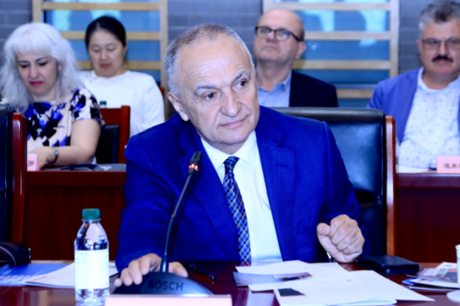 王定华向来宾表示欢迎并介绍了北外目前的整体发展、院系学科和人才队伍建设情况,回顾了中国与阿尔巴尼亚、北外与地拉那大学的交流与合作历史。他指出,中阿友谊源远流长,北外与地拉那大学在语言教学、孔子学院合作建设方面成果丰硕。在北外扩大办学规模和加强多学科建设的背景下,两校可以进一步深化合作:一是持续提升北外阿尔巴尼亚语专业传统优势,借助地拉那大学孔子学院平台,增加学者互访、学生交换的机会;二是随着北外多学科建设和英语教学的普及,可以在语言以外的专业探讨合作可能性;三是发挥各自优势,合作开展区域国别等研究,加强资源共享、学术交流,不断拓宽两校的合作领域。