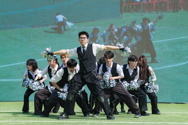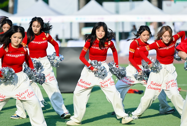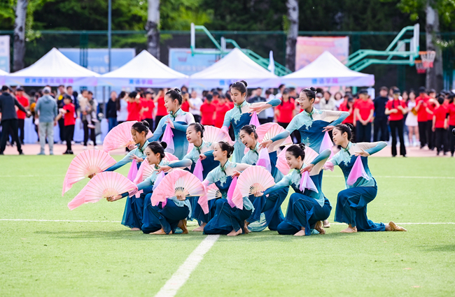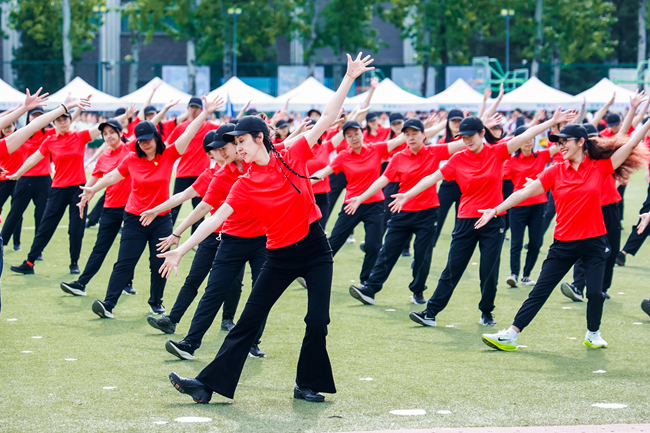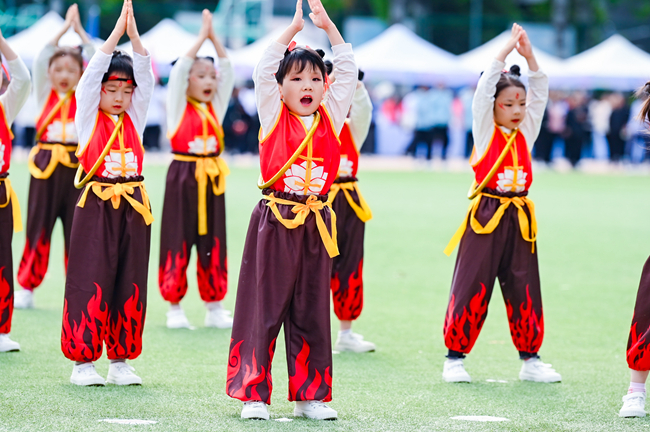 开幕式表演环节,北外附属幼儿园带来了《魔童降世》的表演节目、北外附属外国语学校带来了《附校学子展风采、舞动青春向未来》的表演节目,教职工们表演了《哪吒三太子》舞蹈,学生们进行了啦啦操团体规定套路展示。