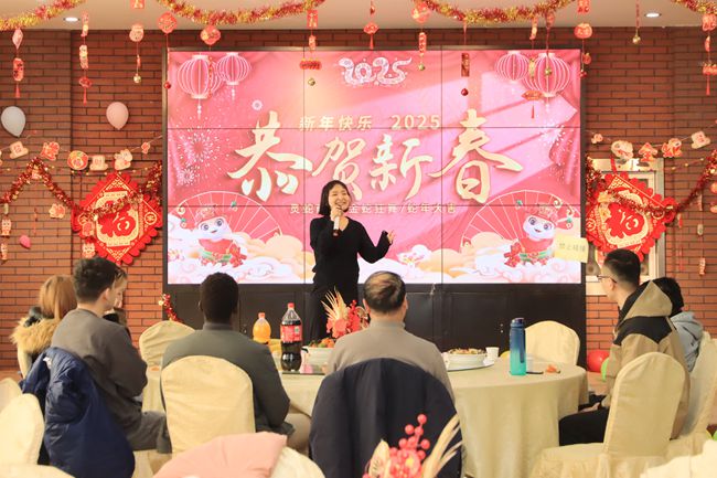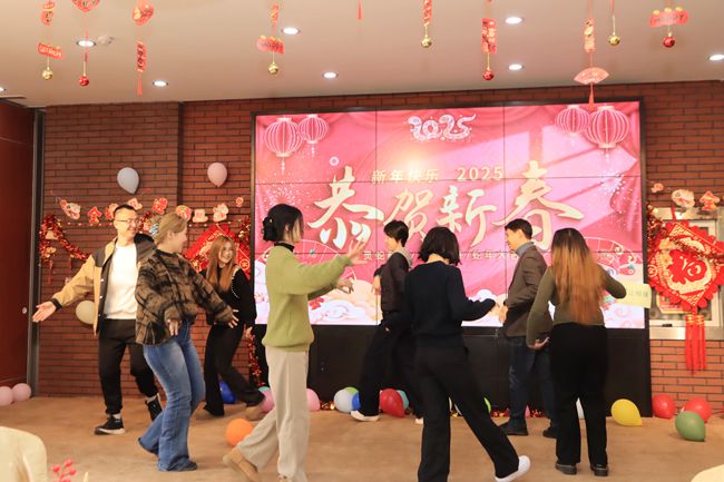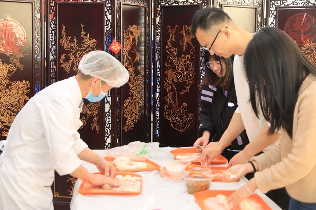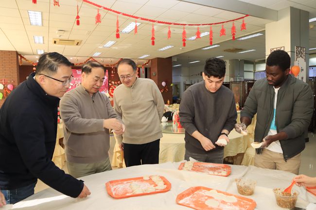 1月27日中午,北外年夜饭慰问活动在学生食堂举行,校领导和中外学生欢聚一堂。校领导和同学们一边包饺子,一边交流在北外的学习心得,老师们熟捻的厨艺技巧里融合着中华民族延续千年的民俗和传统,更有不同花色的饺子让留学生们赞叹不已。中外学生热情积极地为师生们表演民族舞蹈、中华武术,迎得掌声满堂。贾德忠表示,在学校党委的正确领导下,学科建设又迎来了新的成果,为同学们的复合专业学习提供了更高的平台和机会,学校的成绩和光荣与同学们的努力是分不开的,希望同学们能够在北外度过一个有意义的寒假和难忘的春节。