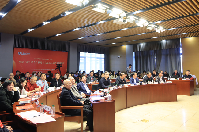 原中共中央党史研究室副主任冯俊,清华大学国学院院长、教授陈来,中共中央对外联络部研究室主任金鑫,北京师范大学学术委员会主任韩震,中国外文局副局长、当代中国与世界研究院院长于运全,北外国际新闻与传播学院教授何明星等专家在主论坛上作了主旨报告,主旨报告由北外党委副书记贾德忠主持。论坛设两场平行分论坛,分别是“当代中国马克思主义体系化学理化研究论坛”和“青年学者论坛:习近平新时代中国特色社会主义思想是‘两个结合’的重大成果”。