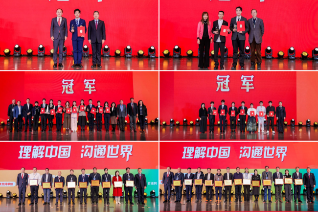 大赛颁奖仪式特别设置“冠军展示”环节,呈现英语组短视频赛项、国际中文组短视频赛项获奖作品精彩集锦及冠军作品,展示英语组笔译赛项冠军的参赛翻译文本、英语组口译赛项冠军的参赛口译实况,并由多语种组冠军用外语分享学习经历、实践经验与参赛所得,体现了选手们扎实的语言综合应用能力和促进文明交流互鉴的远大志向。大赛为省赛组织工作突出或国赛成绩优秀的省级教育行政部门,校赛组织工作突出、省赛承办工作突出,或国赛成绩优秀的高等院校颁发了“优秀组织奖”。本次大赛还特别向20多年来为大赛提供有力支持、促进大赛不断发展的各地外语研究会致以敬意。