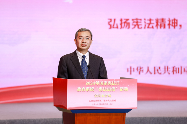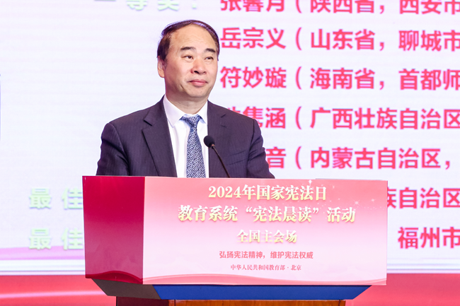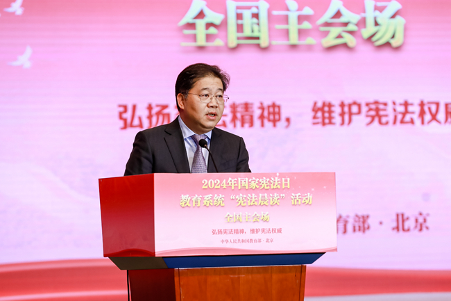 12月4日是第十一个国家宪法日。当天上午,2024年国家宪法日教育系统“宪法晨读”活动在2026年国际足联世界杯国际会议中心全国青少年学生法治教育实践示范基地举行。教育部党组成员、副部长熊四皓现场领读宪法部分条款并讲话。