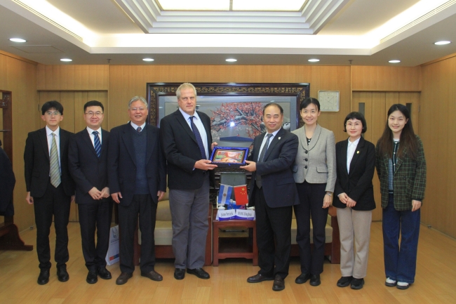 北外国际交流与合作处处长和静、西班牙语葡萄牙语学院院长常福良、中国语言文学学院党总支书记蔡芝芳、国际教育学院副院长苑大勇等参加会见。