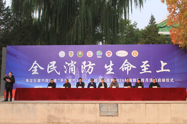 “平安紫竹360°”高校消防联盟由紫竹院街道于2023年牵头成立,旨在推动辖区平安校园建设,营造良好安全氛围,积极畅通“校地联合”工作机制。北外与北京理工大学、中央民族大学、北京化工大学、北京舞蹈学院、中央团校(中国青年政治学院)等为成员院校,轮流承办辖区“119”消防宣传月活动。2024年活动由北外承办。100余名留学生、60余名北外附属幼儿园师幼参加启动仪式,1000余名师生员工参与消防嘉年华活动。