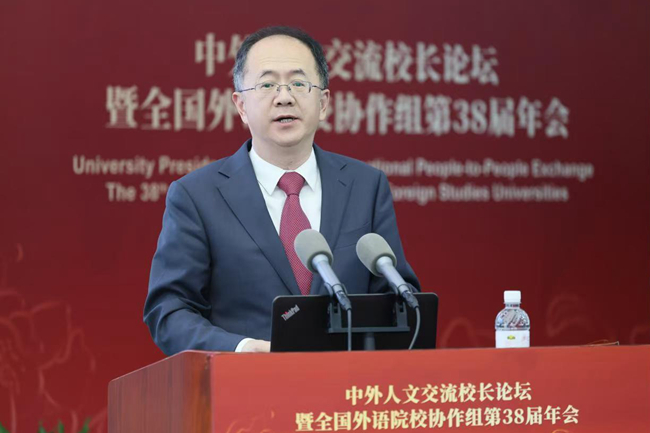 贾文键校长出席中外人文交流校长论坛暨全国外语院校协作组第38届年会