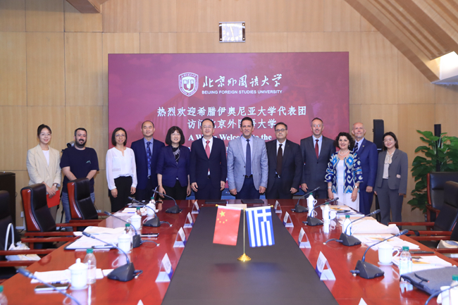 北外欧语学院院长柯静,国际中国文化研究院、历史学院党总支书记,中华文化国际传播研究院副院长薛维华,国际交流与合作处副处长龚婧,欧洲语言文化学院希腊语教研室主任阙建容等参加会见。