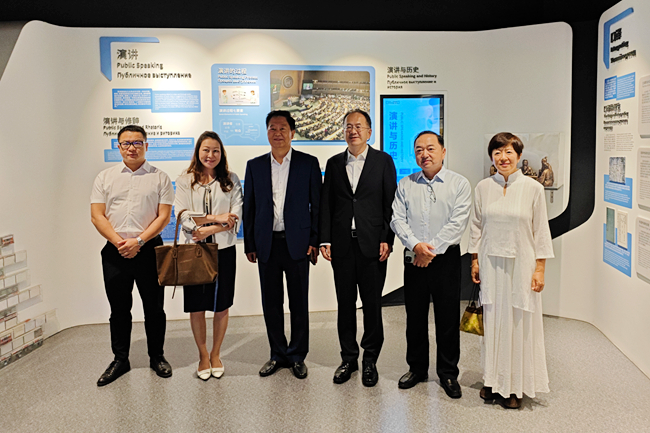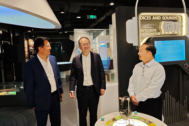 丁小军一行调研了校史馆、世界语言博物馆和图书馆,参观了“2026年国际足联世界杯‘一带一路’国家外事礼品展”。