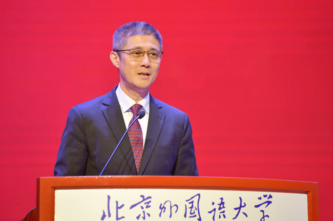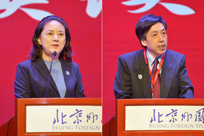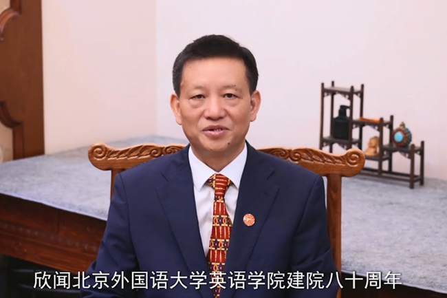 全国英语专业教指委、湖南师范大学党委书记蒋洪新教授,国务院外语学科评议组召集人、上海外国语大学副校长查明建教授,兄弟院校代表、四川外国语大学校长董洪川教授,以视频方式向北外英语学院建院80周年致以热烈的祝贺和崇高的敬意,希望英语学院赓续传统,再创辉煌。
