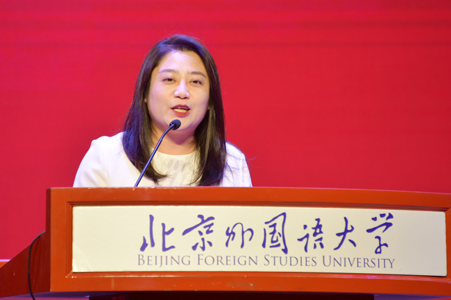 05级校友、中国机械进出口(集团)有限公司市场运营部负责人王建表示,母校老师无私的关爱、严谨的治学,学院国际化教学和丰富的实践平台,让她在语言能力上不断提升,在为人处世、跨文化交际等综合素质上得到锻炼。她表示要做北外精神的传承者,做社会责任的担当者,尽自己所能,为母校和社会发展做出贡献。