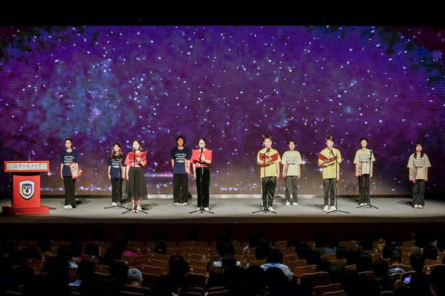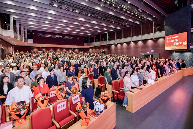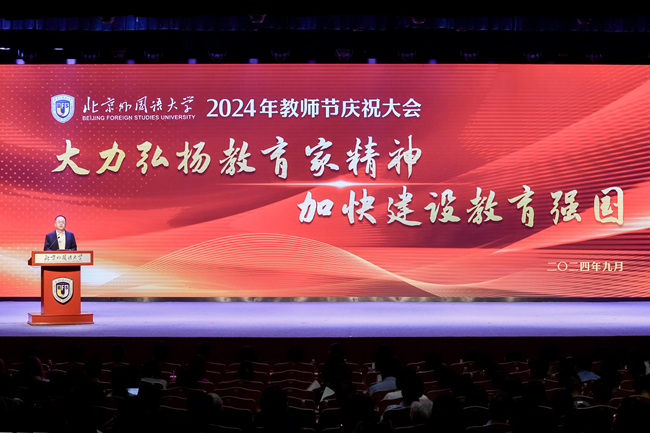 本次大会简朴隆重、主题突出,集中展现了北外教师立德树人、自信自强的精神风貌,激励全校教师以更加奋发有为的精神状态投身教育强国建设伟大实践。获奖教师代表,各二级单位教职工代表,离退休教职工代表,国际教师代表等800余人参加会议。