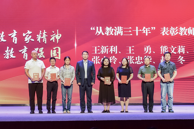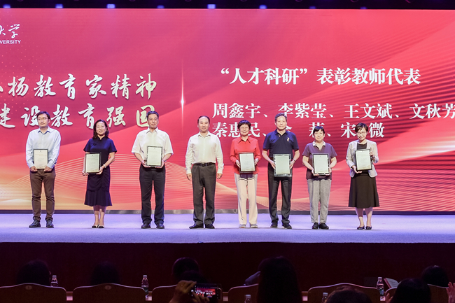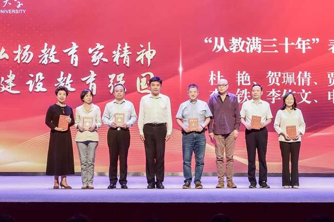 大会对过去一年来在服务管理、援派挂职、教书育人和学术研究等方面做出突出贡献的集体和个人,以及从事教育工作满三十年的教师进行表彰,校领导为获奖教师代表颁发表彰荣誉证书。