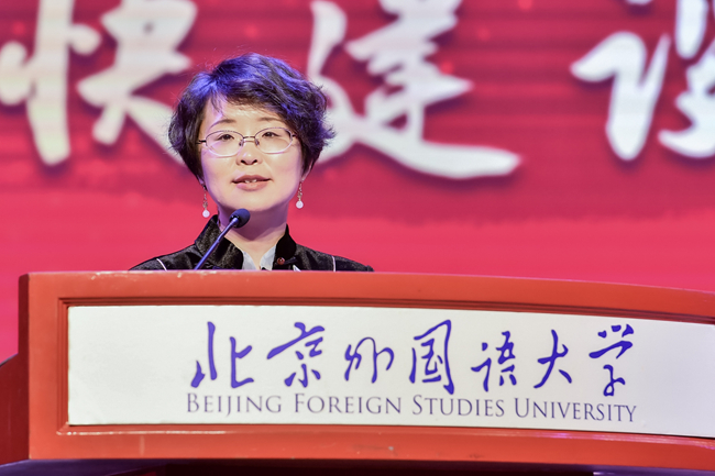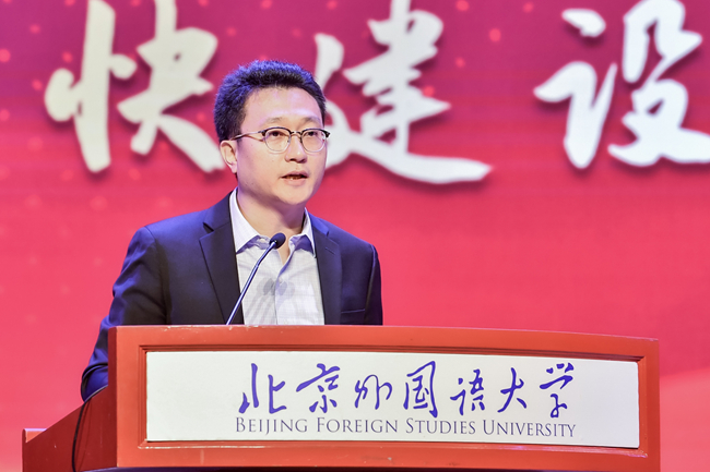法学院教授郑曦、英语学院副教授王文丽作为教师代表进行发言。郑曦从教育领域的历史性变革、服务国家战略需求和践行教育家精神三个维度要求,阐释新时代合格高校教师标准要求。王文丽用英文分享了自己在北外成长发展的心路历程,表示要传承北外老师默默耕耘、潜心治学、无私奉献的精神和情怀,做好中国对外交流和沟通的重要桥梁纽带,为中国更好地走向世界、世界更深入地了解中国贡献力量。