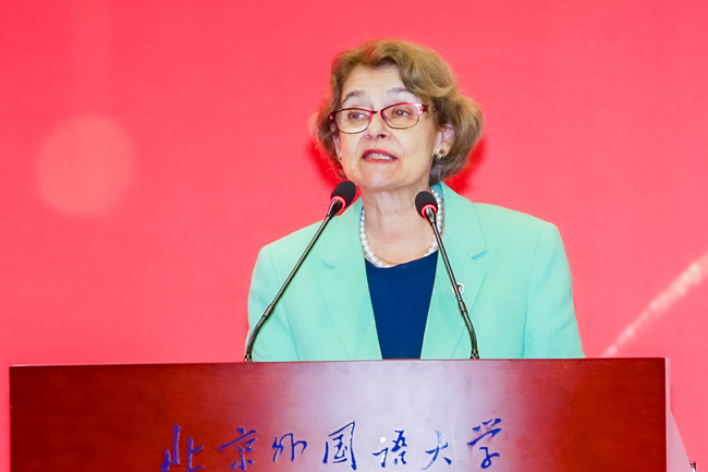伊琳娜·博科娃在发言中对北外促进世界文明交流互鉴表示赞许。她指出,在日益互联的世界中,培养全球胜任力是教育的重要目标,也是应对全球挑战的必要条件。联合国需要具备全球胜任力的人才,北外正是这一领域的引领者,期待北外的学生在促进国际理解和文化交流方面发挥作用。