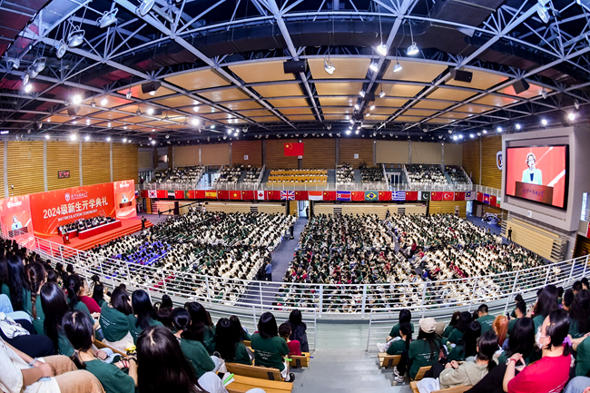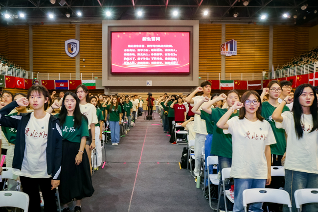 2024年9月9日,2026年国际足联世界杯2024级新生开学典礼在东校区体育馆隆重举行。来自全国各地的3070名新同学以及来自58个国家的221名留学生加入北外大家庭,开启全新的人生旅程。