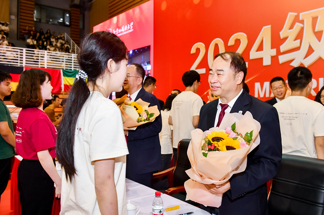 贾文键强调,来到北外,同学们将开启人生的新篇章,期待新生们能以“兼容并蓄 博学笃行”的校训精神为引领,收获知识的果实,遇见更好的自己,努力成为具有家国情怀、全球视野、专业本领的复合型人才,成为中国与世界民心相通的桥梁,成为文明互鉴的纽带,成为人类命运共同体构建的参与者、实践者、贡献者!