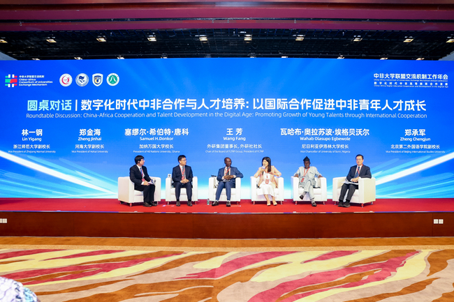 开幕式当天举办了三场学术专题对话。中非双方成员高校领导及受邀嘉宾围绕“数字化时代的教育合作与知识共享”“数字教育与跨文化交流”“数字化时代中非合作与人才培养”等主题,分享经验、交流观点,同叙友谊、共话未来,齐心协力谋划中非高等教育合作新篇章。
