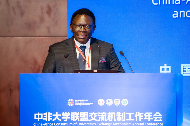 北外党委书记、中非大学联盟交流机制中方执行主任王定华,非洲大学协会秘书长、非方执行主任奥卢索拉・奥耶沃勒分别作中非大学联盟交流机制工作报告。