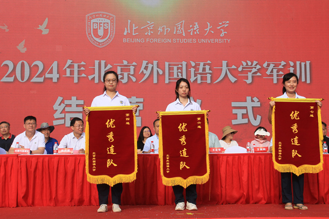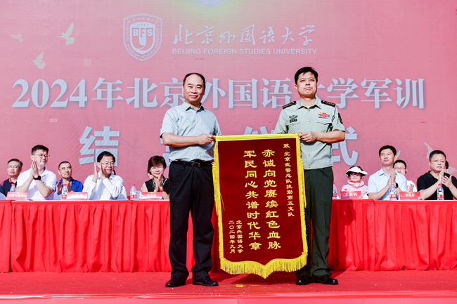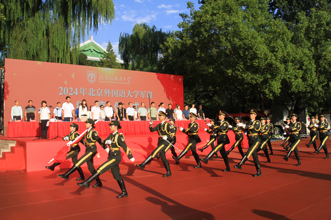 贾德忠向承担本次军事训练工作的武警北京总队执勤第五支队的官兵表示感谢,向完成本次军事训练的同学表示祝贺,并对分列式和特色科目表演给予了高度评价。贾德忠向全体参训学生提出三点希望:一是传承红色基因,厚植家国情怀;二是练就强健身心,展现青春风采;三是践行服务意识,投身强国建设。希望同学们在以中国式现代化全面推进强国建设、民族复兴伟业的新征程上,做出北外人独有的贡献。