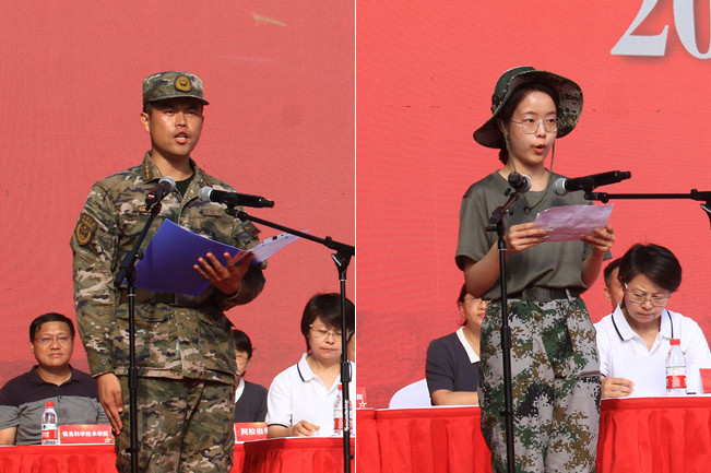 军训团团长代表承训部队进行总结。他表示,北外学子用实际行动做到了严守纪律、吃苦耐劳、团结互助、严格保密,并号召同学们团结协作、众志成城、砥砺奋进,服务人民生活幸福,服务国家发展建设。西班牙语葡萄牙语学院石悦彤同学作为参训学生代表上台发言,她表示,青年要勇于担当,甘于奉献,要将个人理想融入国家发展大局之中,要以更饱满的热情,更坚定的步伐,迈向新的阶段,努力成为具有专业本领、家国情怀、国际视野的新时代北外青年。