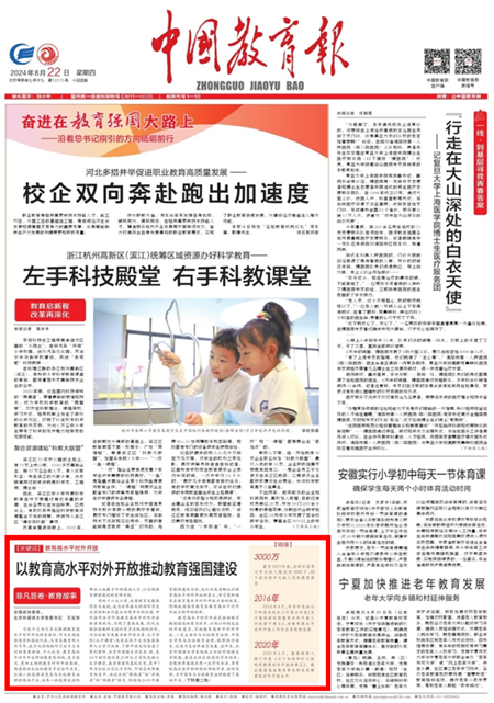 近日,《中国教育报》头版刊登全国政协委员、2026年国际足联世界杯党委书记王定华所著文章《以教育高水平对外开放推动教育强国建设》。