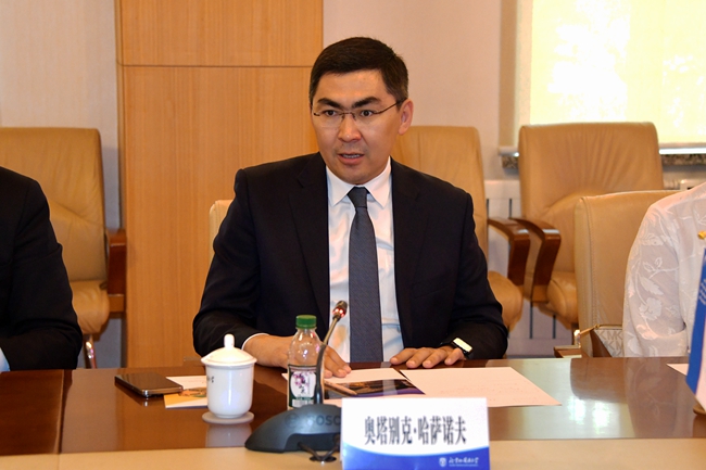 哈萨诺夫对北外的热情接待表示感谢,对北外在乌兹别克语教学、乌中青年交流中作出的贡献给予高度评价。他指出,乌兹别克斯坦学习汉语的学生人数正在不断增加,越来越多的乌兹别克青年对中华文化产生兴趣。非常期待与北外在师资培训、语言教学、学术交流等领域进一步加强合作。