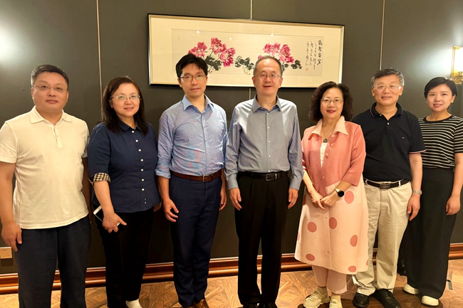 在沪期间,贾文键一行还看望了当地校友代表,与北外上海校友会理事会会长程慧玲、秘书长宋勇亲切座谈。贾文键介绍了学校发展的近况,并与校友代表就完善校友组织、促进校友与母校共赢发展等进行交流。
