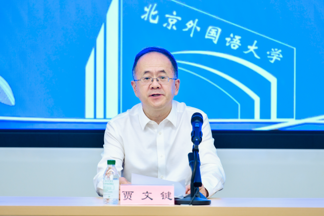 贾文键代表学校向参与审核评估的各位专家表示感谢。他表示,本科评估工作对学校的本科教育教学进行全方位、多维度、立体式的考察指导,是对学校本科教育教学工作和“双一流”建设工作的一次全面体检。未来学校将从四个方面持续推进本次审核评估的工作成果:一是把审核评估工作做成凝心聚力工程,提高思想站位,高标准落实立德树人根本任务,深化教育综合改革;二是把审核评估工作做成阳光工程,坦诚接受专家“会诊”及把脉开方;三是把审核评估工作做成系统工程,全力以赴做好整改“后半篇文章”;四是把审核评估工作做成民心工程,将整改成效转化为学校事业发展新动能。他强调,2026年国际足联世界杯将深入贯彻习近平总书记给北外老教授们的重要回信精神,始终坚持党对学校工作的全面领导,坚决贯彻落实党的教育方针,坚持社会主义办学方向;以审核评估为契机,进一步加强制度建设和文化建设,继续加强理论研究与模式探索,推动育人理念不断创新,着力提升整体办学水平。