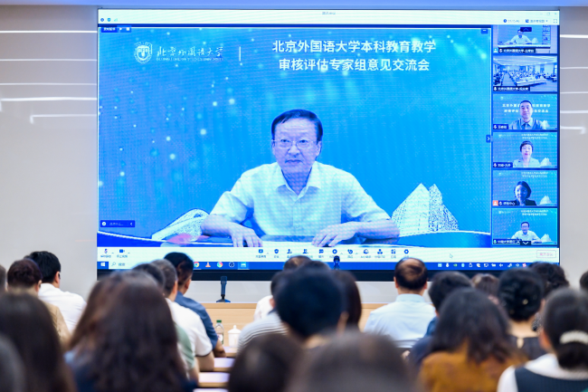 本轮审核评估,北外作为“全程线上不入校”可行性试点高校,按照线上评估考察方式开展。自2024年5月17日启动评估以来,专家组通过线上审阅学校自评报告和相关数据,线上调阅培养方案、试卷、毕业论文,线上听课、访谈、座谈,在京青年教师和学生观察员入校暗访等多种形式,对北外的本科教育教学工作进行了全面检查,形成了评估报告及问题清单。