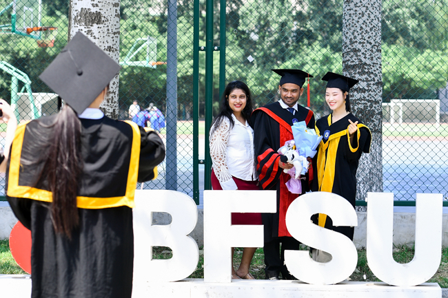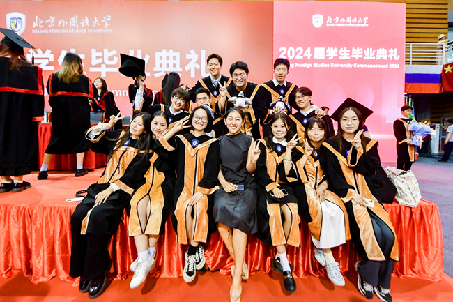 贾文键向即将踏上人生新征途的学子们提出了三点期望:一是懂得总结,善于规划。北外学子应反思过去,从经历中汲取养分,学会总结个人的得失,以过往为鉴,照亮未来之路。制定人生规划时,应志存高远,脚踏实地,设立清晰目标,步步为营,确保每一步都朝着既定的方向迈进。思考五年或十年后的自我形象,以此为动力,精心布局,不懈奋斗。二是学习合作,众行者远。 要认识到合作的重要性,无论是日常生活的小范围协作,还是国际舞台上的大外交,理解与包容是基础。要提倡多元思维和团队精神,了解掌握跨学科知识、拥有团队合作能力是解决复杂问题的关键。在合作中不断学习与成长,携手共进,能够走得更远。三是心怀家国,拥抱世界。 毕业生要铭记北外精神,在深化中外交流、增进各国人民友谊、推动构建人类命运共同体中发挥作用。利用自身语言优势,成为文化传播的桥梁,倾听世界、理解差异,以全球视野和开放心态参与国际事务,为促进世界和平与发展贡献力量。