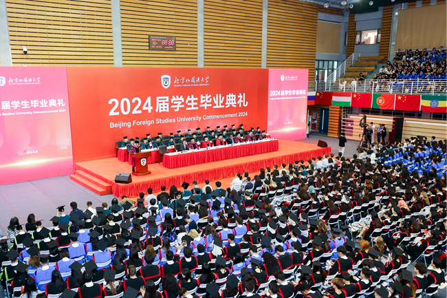 此次毕业典礼全程网络直播。马来西亚驻华使馆副馆长努尔法利纳·默罕默德·阿兹米、教育参赞默罕默德·沙烈胡丁·穆罕默德·迪利夫,埃塞俄比亚驻华大使馆三等秘书拉特召尔·那哈勒·里尔,北外各学院、相关职能部处负责人,教师代表,2800余名2024届本科生、研究生、留学生参加毕业典礼。