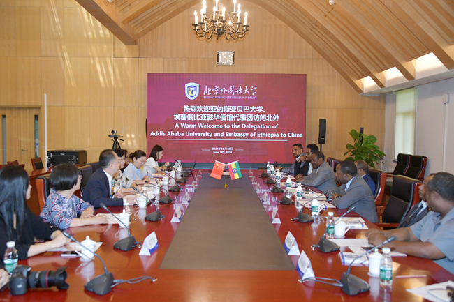 贾文键对亚的斯亚贝巴大学一行表示欢迎,介绍了北外的办学特色和阿姆哈拉语专业的建设情况。他强调,北外阿姆哈拉语专业是全国唯一专业点,第一届阿姆哈拉语专业本科生即将毕业,服务中国与埃塞俄比亚合作。他感谢亚的斯亚贝巴大学和埃塞驻华使馆一直以来的支持,并表示北外愿意进一步深化与亚的斯亚贝巴大学的交流,共同推动中国与埃塞俄比亚的民心相通,为两国在各领域的合作作出贡献。