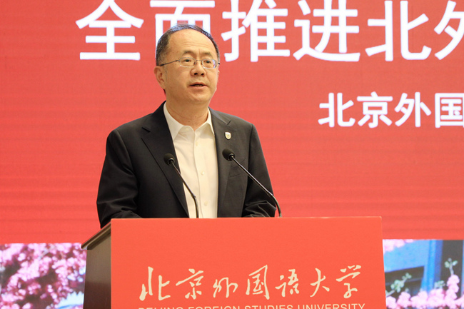 教育部本科教育教学审核评估专家组全体成员,北外全体校领导、处级干部、本科教学单位教务秘书、学生代表等200余人参加会议。
