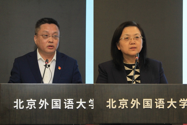 北外教师工作部部长、人事处处长刘博然,教务处处长李莉文代表学校职能部门发言,表示将继续深入贯彻落实习近平总书记“3·18”重要讲话精神,大力支持思政课建设和马克思主义学院发展。马克思主义学院教师李永乐、阿拉伯学院本科生孟周翔和中国外语与教育研究中心硕士研究生陈镜合作为师生代表分别作了发言。