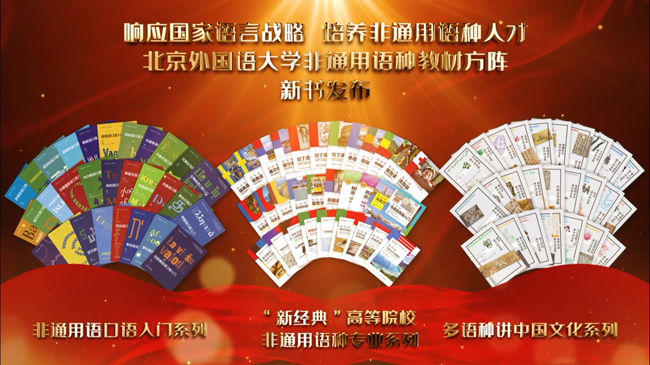 北外非通用语种教材方阵在论坛发布,充分展现我国非通用语种教材建设与人才培养的探索与实践,助推非通用语种教育高质量发展,促进全球文明交流互鉴。赵刚、常福良、大连外国语大学校长刘宏、上海外国语大学原校长曹德明、天津外国语大学原校长修刚、北京语言大学教授罗林、清华大学教授姜景奎和王芳共同发布教材方阵。
