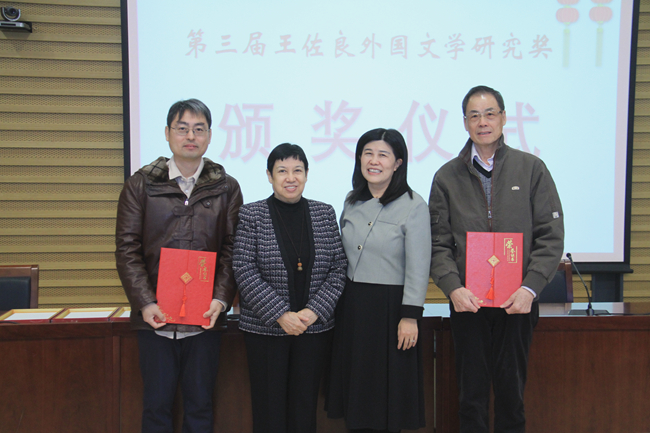 会上公布了第三届王佐良外国文学研究奖获奖名单,一等奖空缺;浙江工商大学蒋承勇教授主编的丛书《19世纪西方文学思潮研究》(六卷本)、湖南师范大学蒋洪新教授的专著《T. S. 艾略特文学思想研究》、北京大学申丹教授的专著《双重叙事进程研究》、杭州师范大学殷企平教授主编的丛书《文化观念流变中的英国文学典籍研究》(六卷本)获得二等奖;北外张建华教授的专著《俄罗斯文学的黄金世纪》和中国人民大学周铭教授的专著《“好人的庇护所”:薇拉·凯瑟作品中的国家身份修辞研究》获得提名奖。