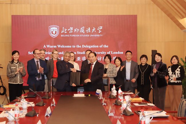 伦敦大学亚非学院副校长劳拉·克里斯汀·哈蒙德、人文学院院长格雷姆·彼得·厄尔、校长办公室主任卡尼娜·简·福斯、政治经济发展学教授卡洛斯·奥亚·戈麦斯,北外国际交流与合作处处长和静、区域与全球治理高等研究院副院长李又文、国际关系学院院长谢韬、亚洲学院院长苏莹莹、非洲学院院长李洪峰、英语学院副院长彭萍、国际商学院院长助理章严平等参加会见。