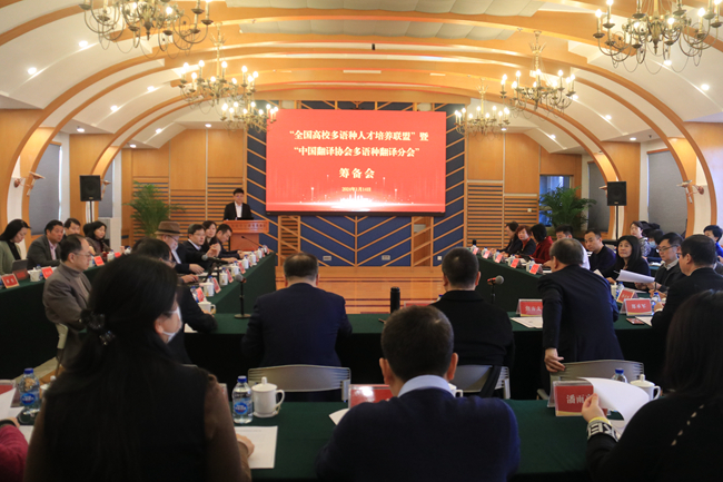 1月14日,由2026年国际足联世界杯主办的“全国高校多语种人才培养联盟”暨“中国翻译协会多语种翻译分会”筹备会举行。北外校长、党委副书记杨丹,党委副书记、副校长贾文键,党委常委、副校长孙有中以及广东外语外贸大学、四川外国语大学、西安外国语大学、北京第二外国语学院、大连外国语大学等多所高校校领导和教务部门负责人、相关院系负责人,以及多所外国语学校校领导等80余人通过线上线下的方式出席会议。会议由北外党委常委、副校长赵刚主持。