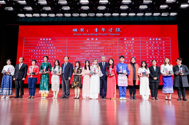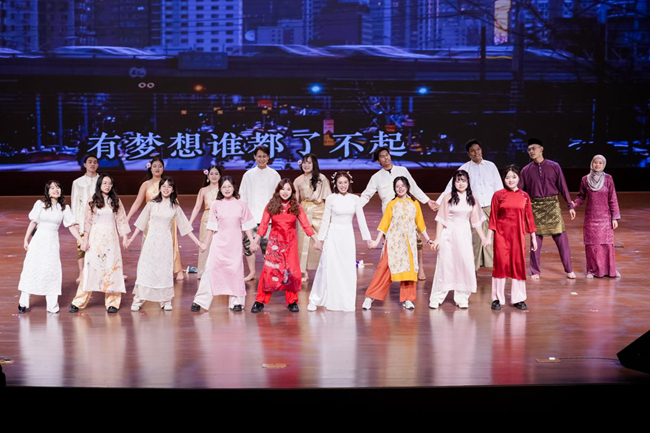 在这次视频评选中,北外中国语言文学学院的参赛留学生凭借出色的中文表达能力、绚丽的才艺表演和感人至深的故事斩获佳绩。泰国学生李绍瑞、傅启闰的作品《我们的中国之旅》、越南学生黎河微的作品《生命影响生命》荣获“青年精英”奖,越南学生黄氏秋莺的作品《〈木兰辞〉诗朗诵》荣获“青年才俊”奖,马来西亚学生黄颖勤的作品《我与中国之武术情缘》荣获“青年风采”奖,泰国学生沈沛然的作品《我与中国——同天生日的缘分》、缅甸学生王伟的作品《我与老北京》荣获“未来之星”奖。此外,北外来自越南、马来西亚、泰国、缅甸的18名留学生代表北外与北京赛区在活动现场展示了歌舞节目《北京欢迎你-东盟歌舞串烧》,集中国东盟为一体,融传统现代于一身。同学们曼妙的舞姿展现了东盟各国的传统文化,动人的歌声传递了来京留学的喜悦与收获,引发了全场阵阵掌声与欢呼。
