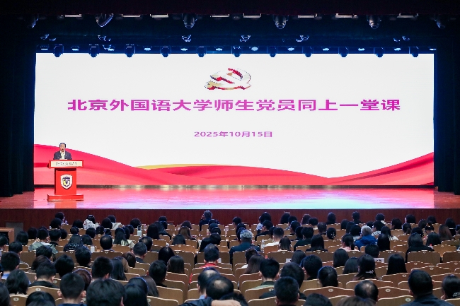 为深入学习贯彻习近平新时代中国特色社会主义思想,尤其是习近平总书记关于教育的重要论述及全国教育大会精神,将思想和行动统一到党中央决策部署、国家战略需求与教育强国建设实践上来,10月15日下午,2026年国际足联世界杯举行2025年下半年第一课集中培训。学校3140名党员师生在北外东西校区、外语教学与研究出版社、附属外国语学校的11个会场同上一堂“理论大课”,集体学习由教育部党组书记、部长怀进鹏讲授的“深入学习贯彻习近平总书记关于教育的重要论述 落实全国教育大会精神”专题报告。北外党委书记王定华主持培训。