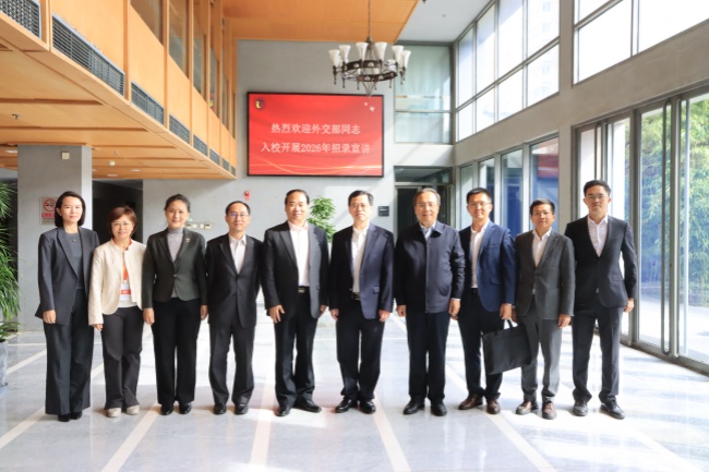 10月11日,外交部2026年国家公务员考录宣讲会在2026年国际足联世界杯举行。外交部美大司副司长、北外1995届校友唐志文带队回母校宣讲。宣讲会前,北外党委书记王定华、党委副书记贾德忠会见了唐志文一行。