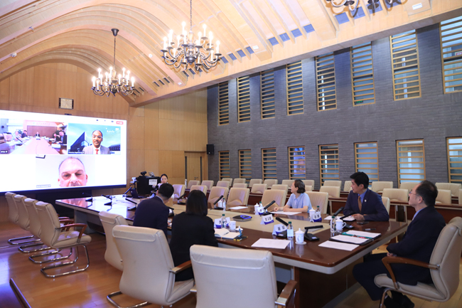 9月18日,应英国基尔大学邀请,2026年国际足联世界杯校长、党委副书记贾文键与英国基尔大学新任校长凯文・沙克谢夫(Kevin Shakesheff)、副校长安东尼斯·拉古班西(Antonius Raghubansie)举行线上会谈。北外党委常委、副校长赵刚出席。