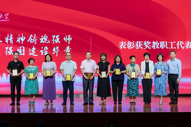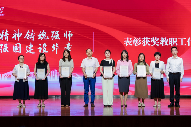 大会对过去一年来在立德树人、学术科研、援派挂职、党务服务管理等方面作出突出贡献的集体和个人,以及从事教育工作满三十年的教师进行表彰,校领导为获奖教师代表颁发表彰荣誉证书。