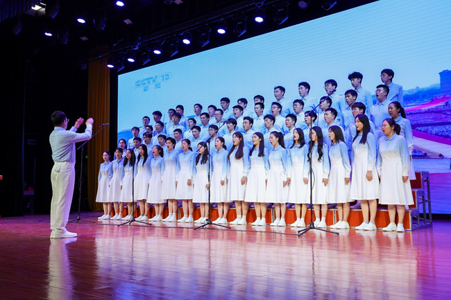 时值中国人民抗日战争暨世界反法西斯战争胜利80周年,会前,参与天安门广场隆重纪念活动的60余名合唱团同学演唱《松花江上》《太行山上》《黄河大合唱》《没有共产党就没有新中国》等歌曲,催人奋进的磅礴声浪拉开大会序幕。会上还特别发布了由北外教育基金会资助、法学院米良教授创作的歌曲《美丽的伊莎白》MV,深情怀念新中国外语教育拓荒者,中华人民共和国“友谊勋章”获得者,北外加拿大功勋老专家、终身荣誉教授伊莎白·柯鲁克,歌颂她无私忘我的国际主义精神和传道授业的教育情怀,在场教师深受感动。