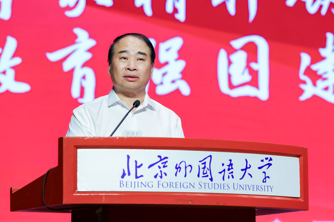 贾文键在主持讲话中指出,过去一年来,北外教师以习近平新时代中国特色社会主义思想为指引,以教育家精神为引领,深入服务国家战略,努力培育“三有”人才,躬耕教坛、潜心育人,甘于奉献、追求卓越,在教育教学、科研创新、人才培养、国际交流、社会服务等方面取得了丰硕成果,展现了新时代北外人的使命担当。