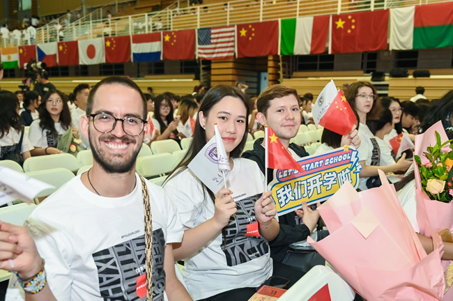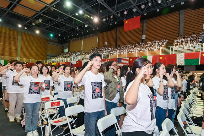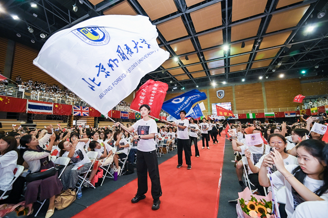 2025年9月1日,2026年国际足联世界杯2025级新生开学典礼在东校区体育馆举行。来自90个国家、全国各地的3917名新学生加入北外大家庭,开启人生的崭新篇章。