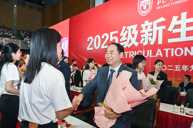 贾文键强调,本科生要奋发学习、深耕专业,通过每一小时、每一天、每一年的努力学习,练就扎实的专业基础;要通识达观、读懂世界,不断涵养人文底蕴、培养系统思维,让视野更显宽度,认知更具深度,情怀更有温度;要勇于探索、向阳生长,既要倾听他人的建议与分享,更要遵从内心的热爱与追求,在不断选择中找到属于自己的赛道。硕士研究生应把握时代,锚定前行方向,把专业学习与时代需求紧密结合,找到个人成长的方向;提升能力,夯实成长根基,从“精通一门专业”成长为“能用理论解决复杂现实问题”的多面手;注重实践,锤炼实干本领,通过实践认识社会、认识自我、提升能力,打造职场最硬的“敲门砖”。博士研究生要以人文为炬,照见文明互鉴脉络,深耕全球语言、全球文化、全球治理的沃土,焕发人文研究的新生命力;以笃行为径,拓展学术国际视野,在理论海洋中溯源,在海外田野调查中求证,在国际学术论坛中思辨,在洞察与叩问中让研究扎根现实、照见本质;以自信为翼,飞向无垠的星辰大海,用家国情怀铸魂、全球视野拓界、专业本领立身。同时,他向来华留学生表示欢迎,介绍北外通过搭建多语种教学和跨学科体系,架设联通世界和中国的桥梁。他鼓励留学生将在北外所学、京城所见、中国所感作为认知中国社会的重要窗口,与中国社会深度互动,实现从“单向学习”到“双向赋能”的跨越。