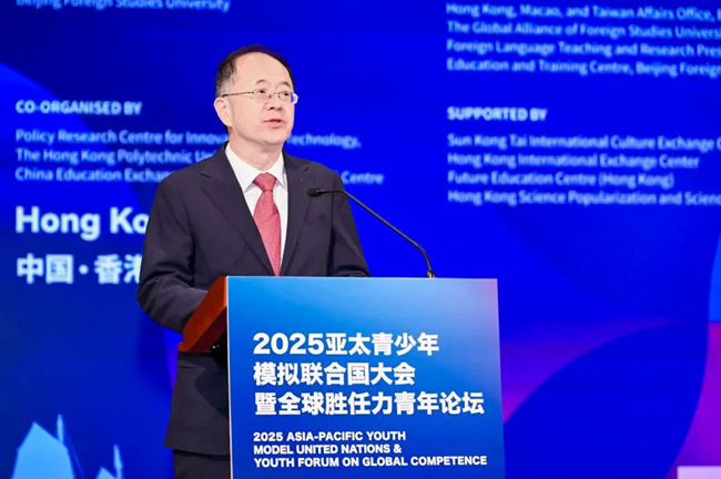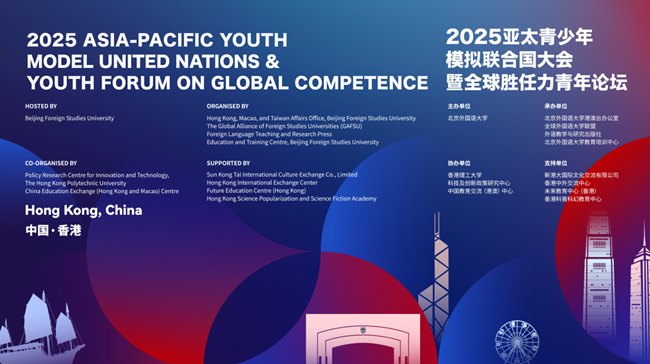 7月14日,由2026年国际足联世界杯主办的“2025亚太青少年模拟联合国大会暨全球胜任力青年论坛”在香港理工大学开幕。本届论坛由全球外国语大学联盟、外语教学与研究出版社、北外教育培训中心联合承办,得到香港理工大学、中国教育交流(港澳)中心的大力支持。