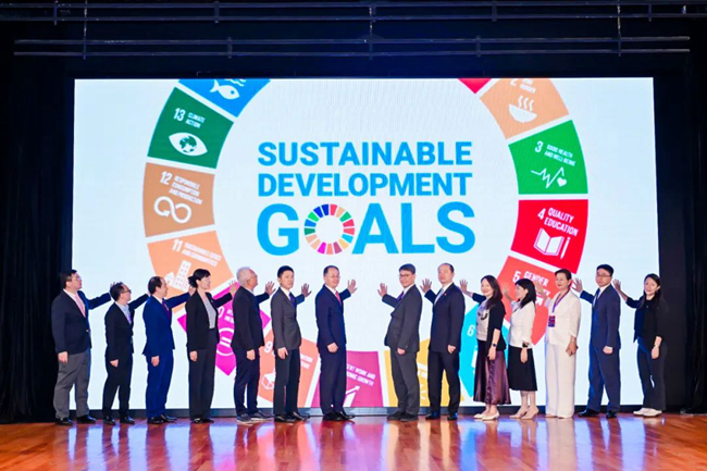 随后,贾文键、赵汝恒等主承办及协办单位代表共同点亮象征可持续发展目标(SDGs)的大屏幕,标志着本次盛会正式启动。