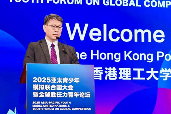 香港理工大学副校长(研究及创新)赵汝恒表示,香港理工大学矢志培育心系家国、肩承世界的领袖人才,致力引导学生知行合一、回馈社会,这与模拟联合国的精神紧密相连。青年是驱动文明进步、破解全球性挑战的关键力量。他鼓励青少年代表在活动中,秉持“科技向善”的创新思维,锻造未来核心素养,淬炼全球胜任力,在驾驭技术变革的同时守护人类文明根基,将科技创新与人文关怀融合,实现“不让任何人掉队”的可持续未来。